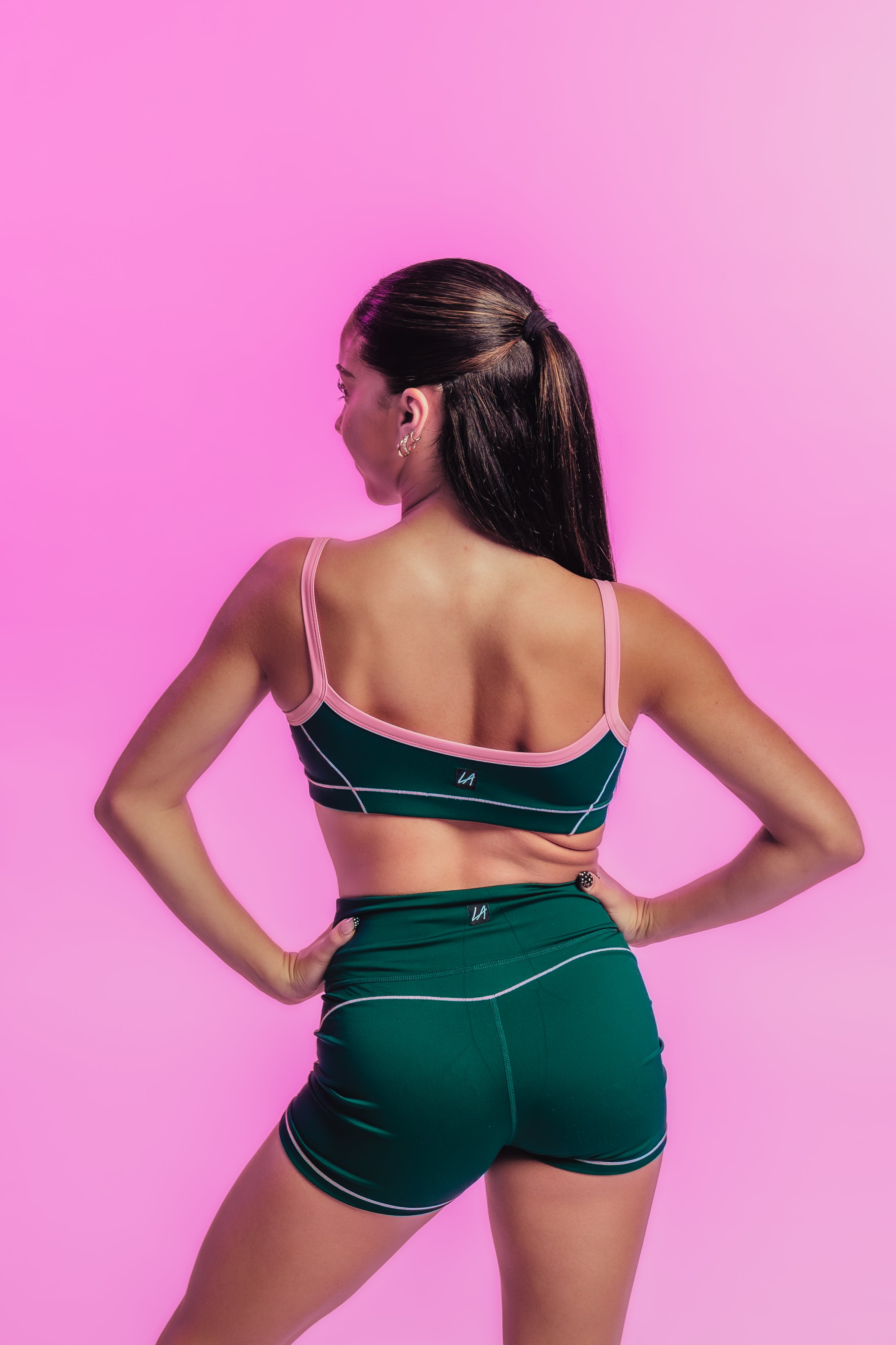 Playful meets polished in these Salem green shorts with pink piping. The BRYNN ADULT SHORT has bold contrast that adds just the right amount of fun while keeping a sleek, sporty vibe. Designed for comfort and movement, they’re perfect for practice, travel, or off-duty days.