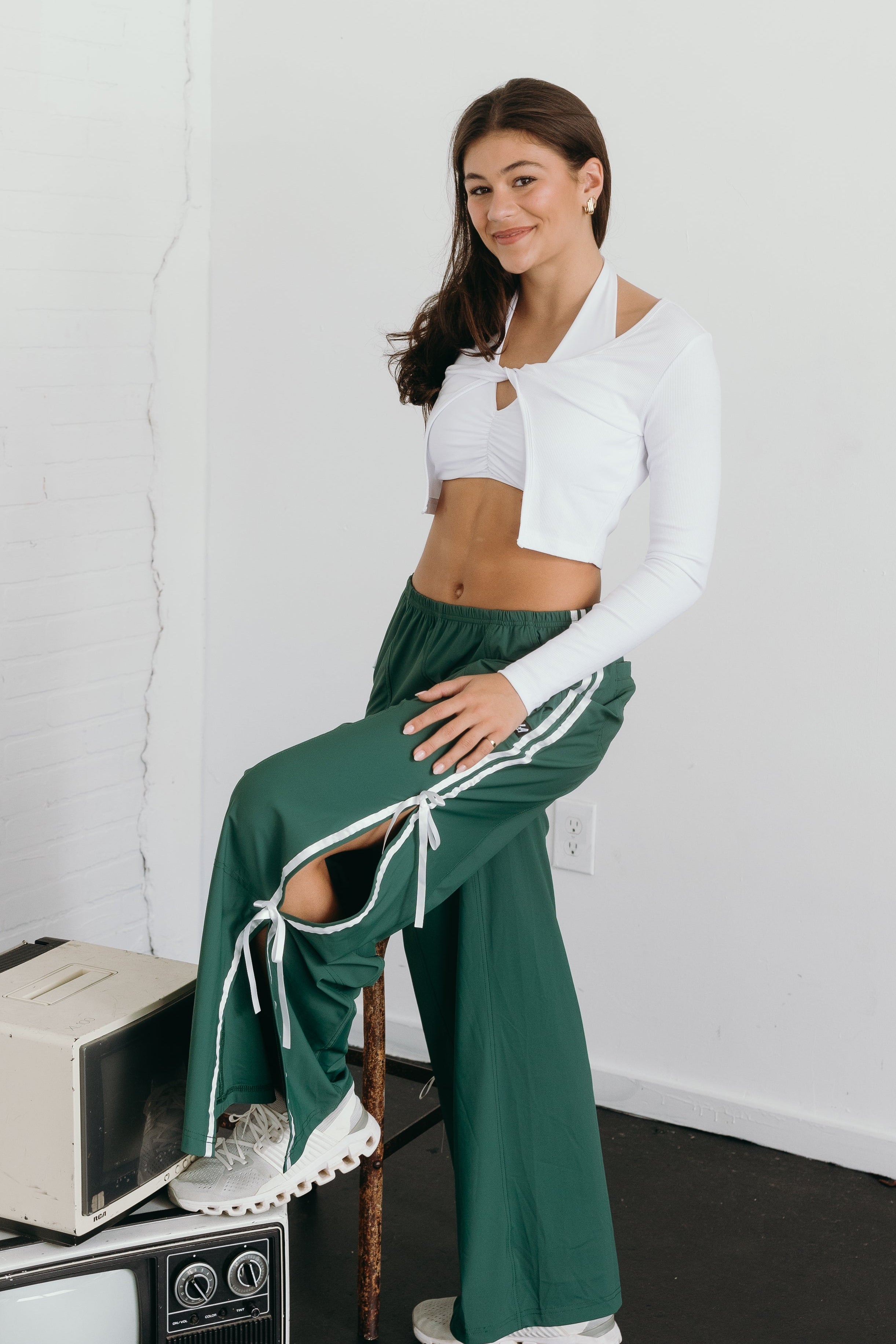 Elevate your wardrobe with our best-selling bow pant, now available in a refined hunter green and white combination. Designed for a flattering fit and timeless style, this pant offers both comfort and sophistication, making it perfect for any occasion. Experience the subtle yet striking new color that enhances your everyday elegance.