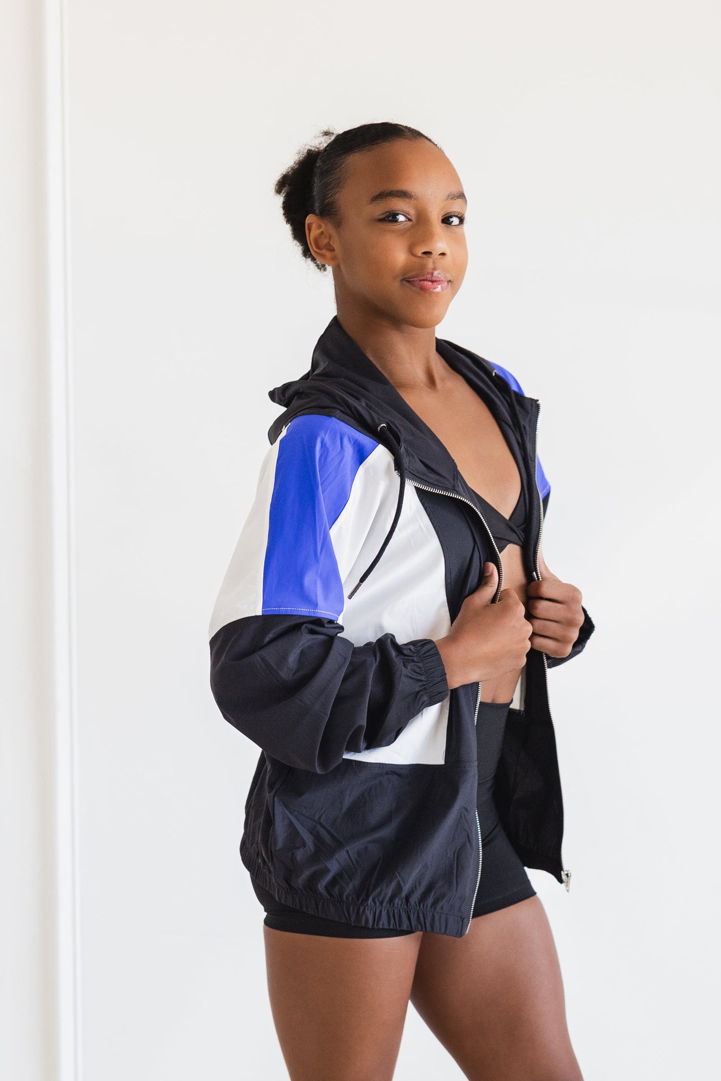 Step out in style with this striking royal, black and white zip-up jacket. Lightweight and easy to layer, it offers just the right amount of coverage without feeling heavy. The bold color blocking creates a sporty, modern look, while the smooth fabric and relaxed fit make it comfortable for all-day wear. Perfect for layering over casual or active outfits, this jacket combines sleek design with effortless versatility.