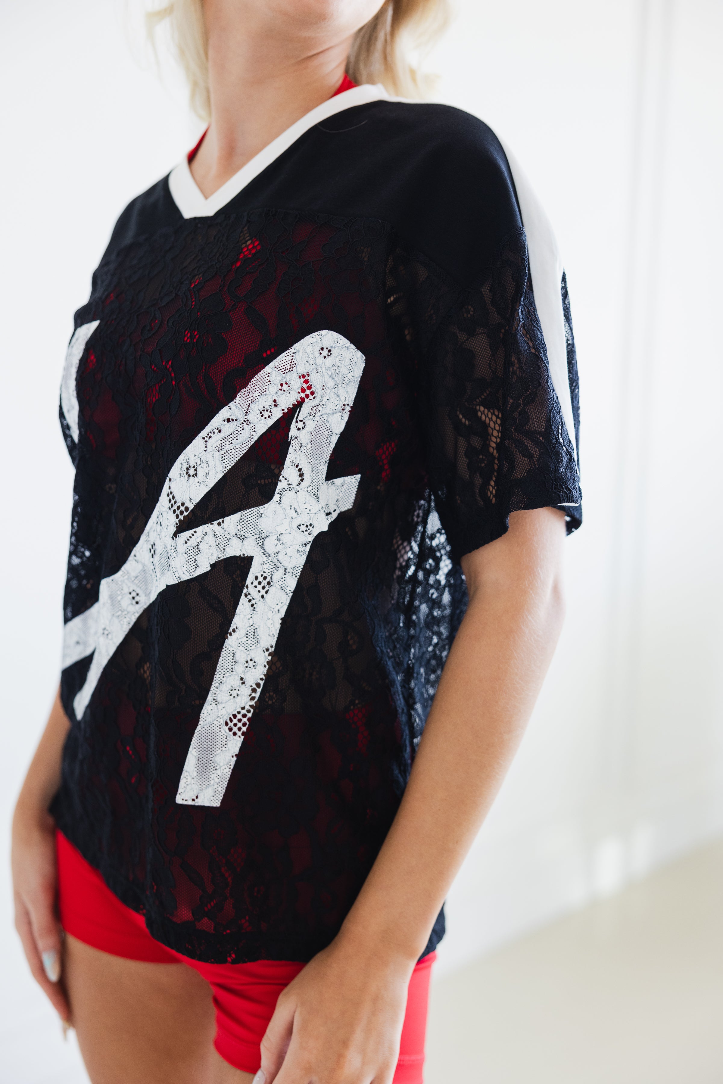 Rock the LA spirit in this stunning lace jersey that proves you can rep the best team while looking absolutely fierce. Crafted with comfort in mind, this black and white lace design delivers the perfect blend of style and wearability—whether you're cheering from the sidelines or making a statement!