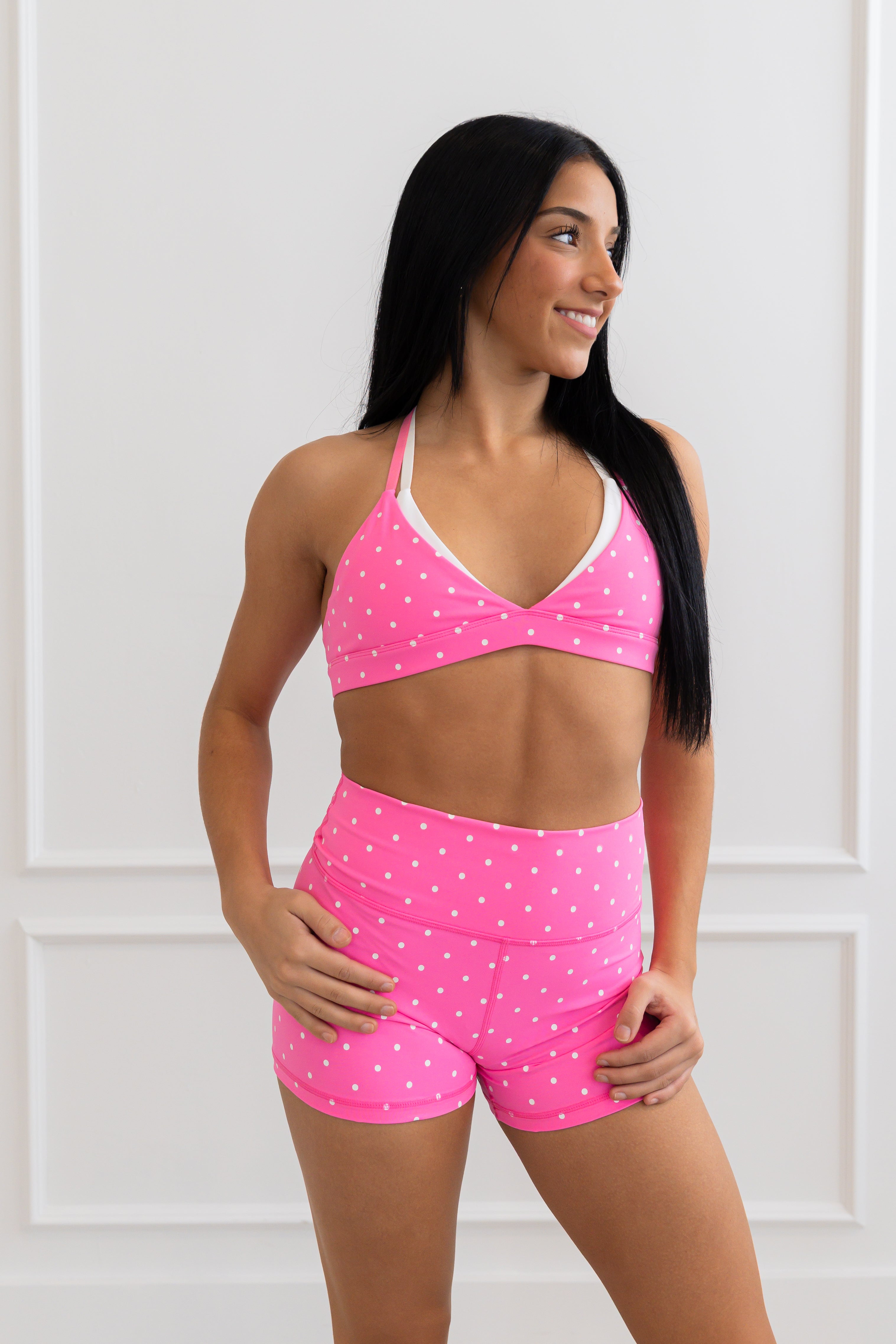 The Bella Child Short in Neon Pink/White Polka Dots are bold, playful, and made to turn heads. The vibrant color brings instant energy, while the soft, stretchy fabric gives you a smooth, comfy fit that moves with you all day. Lightweight and breathable with just the right amount of sass, they’re easy to style and impossible to ignore—because your activewear should be as confident as you are.