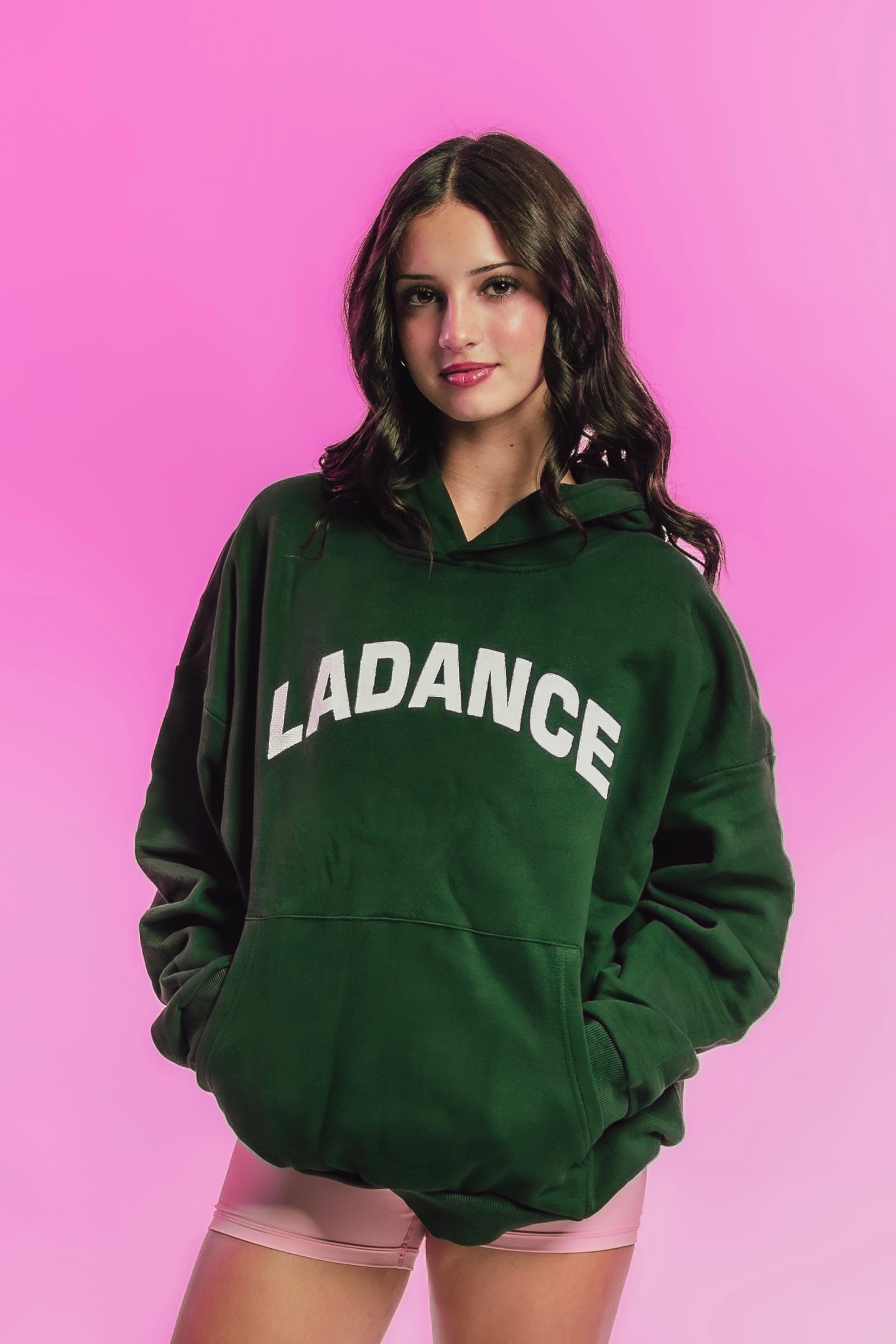 Effortlessly cool and endlessly comfortable — this oversized hunter green hoodie is made for laid-back days with a polished edge. Designed with a relaxed fit and ultra-soft feel, it’s perfect to throw over your favorite sets before or after practice. Featuring bold LA Dance lettering across the front, it brings just the right mix of ease and style — whether you’re warming up or winding down.